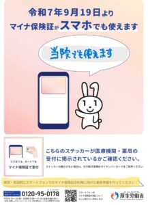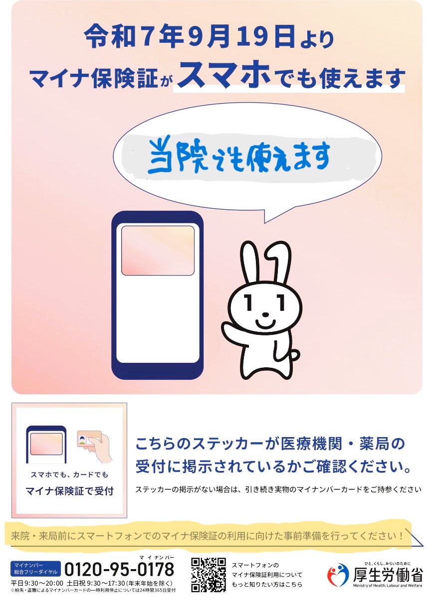 当院にて2025年9月19日よりマイナ保険証がスマートフォンでも利用可能になりました。